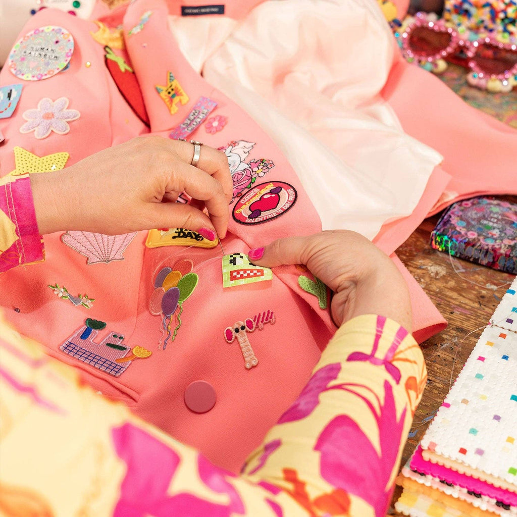 This dazzling label collaboration is made to inspire the home sewist to dream big, bold and beautiful! You have the skills to create the most show-stopping piece of fashion right in your sewing room. Make it EXTRA! Something you've imagined in your dreams. Dare to put bright and bold colours together, paired with a little (or a lot!) glitter and tinsel. Or maybe you prefer business on the outside and PARTY on the inside - add one of these labels for extra pizzazz!